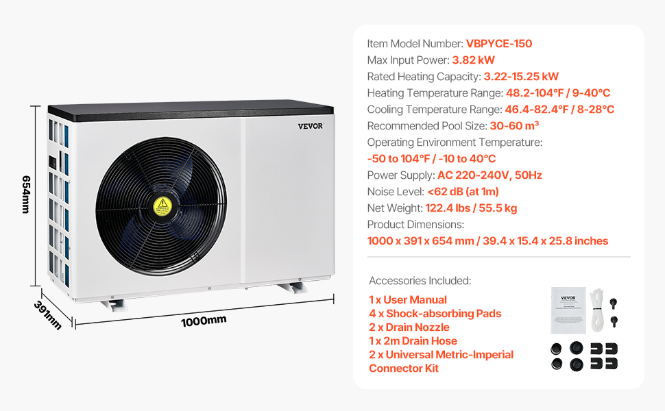 Toto bazénové tepelné čerpadlo s vysoko výkonným kompresorom na rýchly ohrev a stálu teplotu vody. Poháňané čistou energiou znižuje náklady a vplyv na životné prostredie. Používateľsky prívetivý ovládací panel a technológia redukcie hluku zabezpečujú pohodlné a tiché plávanie.