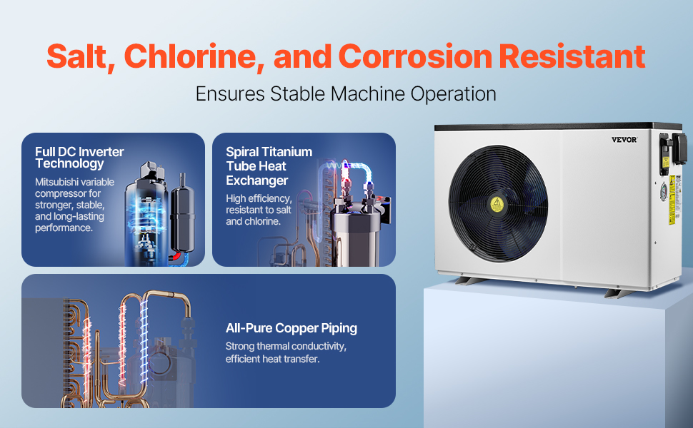 Je skonštruované tak, aby odolávalo náročným podmienkam, odoláva soli, chlóru a korózii, čím chráni jednotku pred poškodením a znižuje potrebu opráv a výmeny, čím šetrí vaše úsilie.
