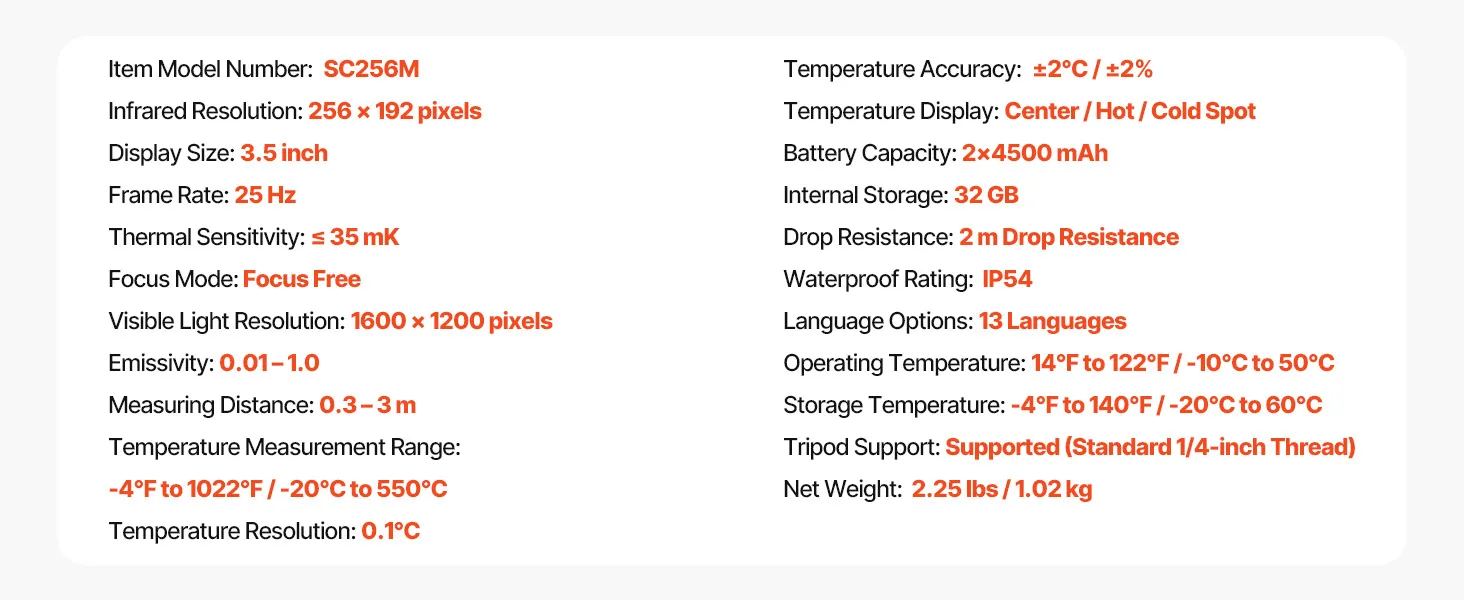 Ručná termálna kamera 256×192, 2mp, 25hz, 3.5-inch, -4°f–1022°f, wifi