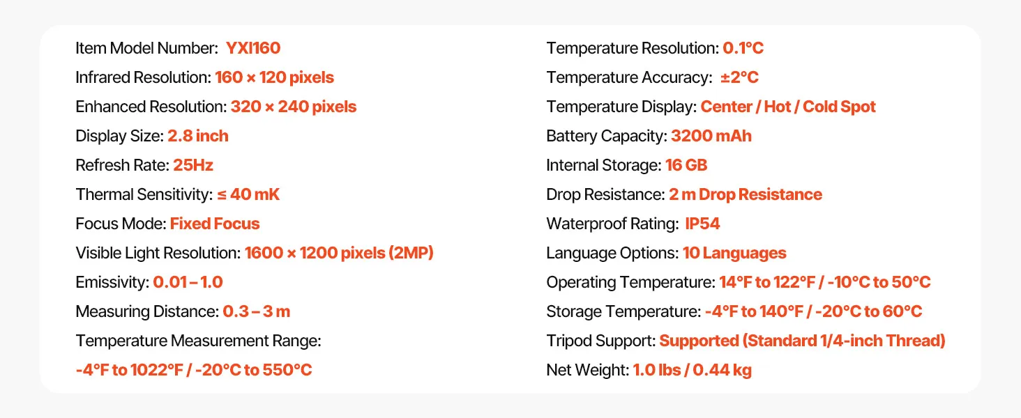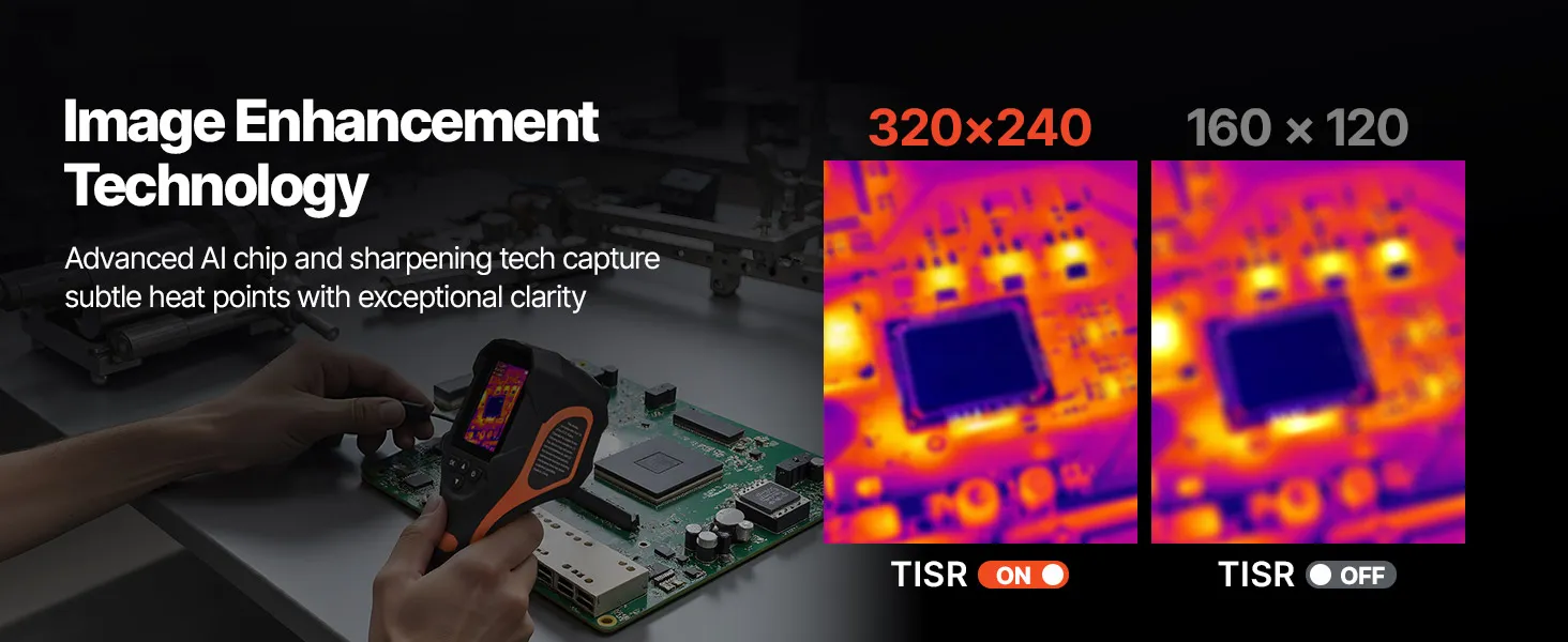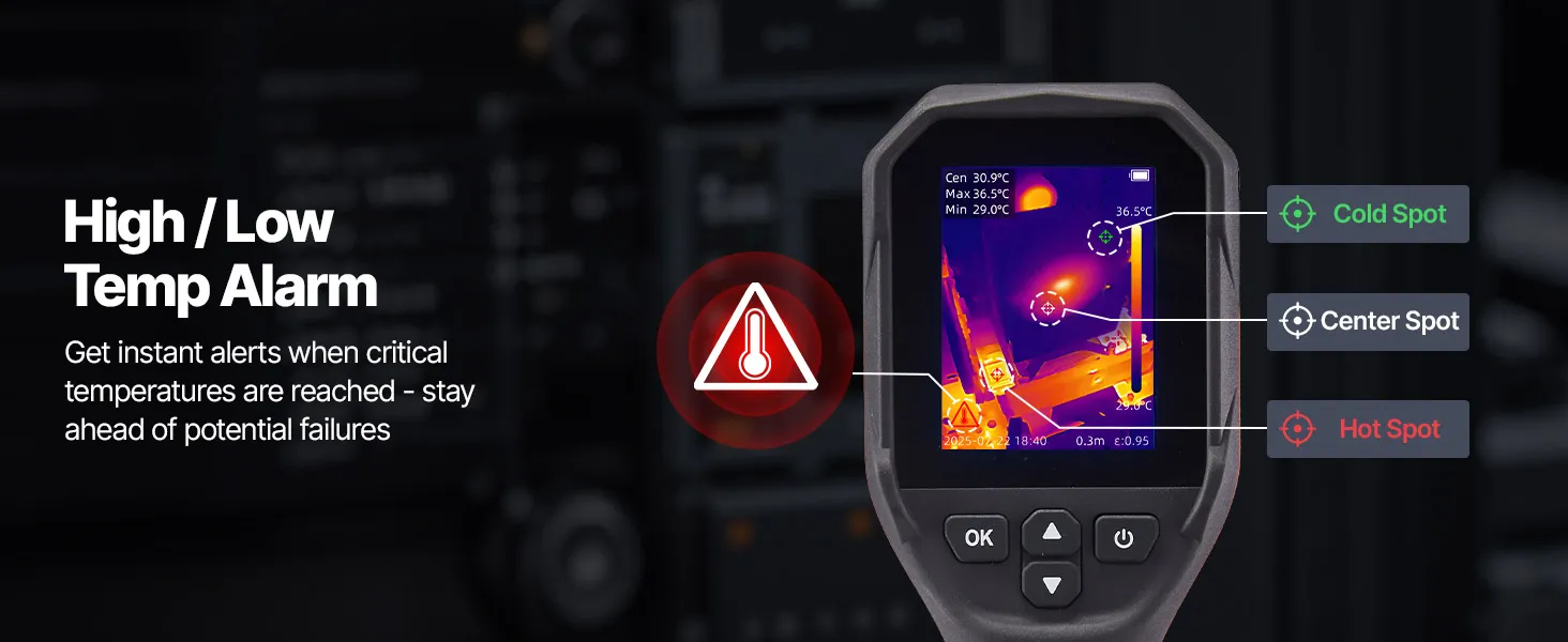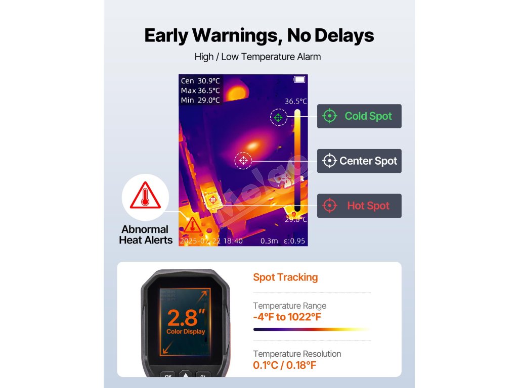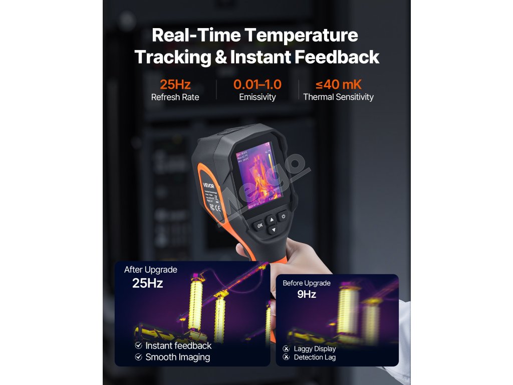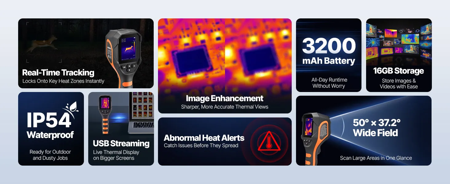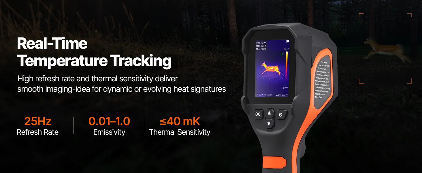 Pracujte s okamžitým zobrazovaním ako na dlani! Táto ručná termokamera rýchlo odhalí neviditeľné teplotné rozdiely, vďaka čomu sú komplexné kontroly bezproblémové.