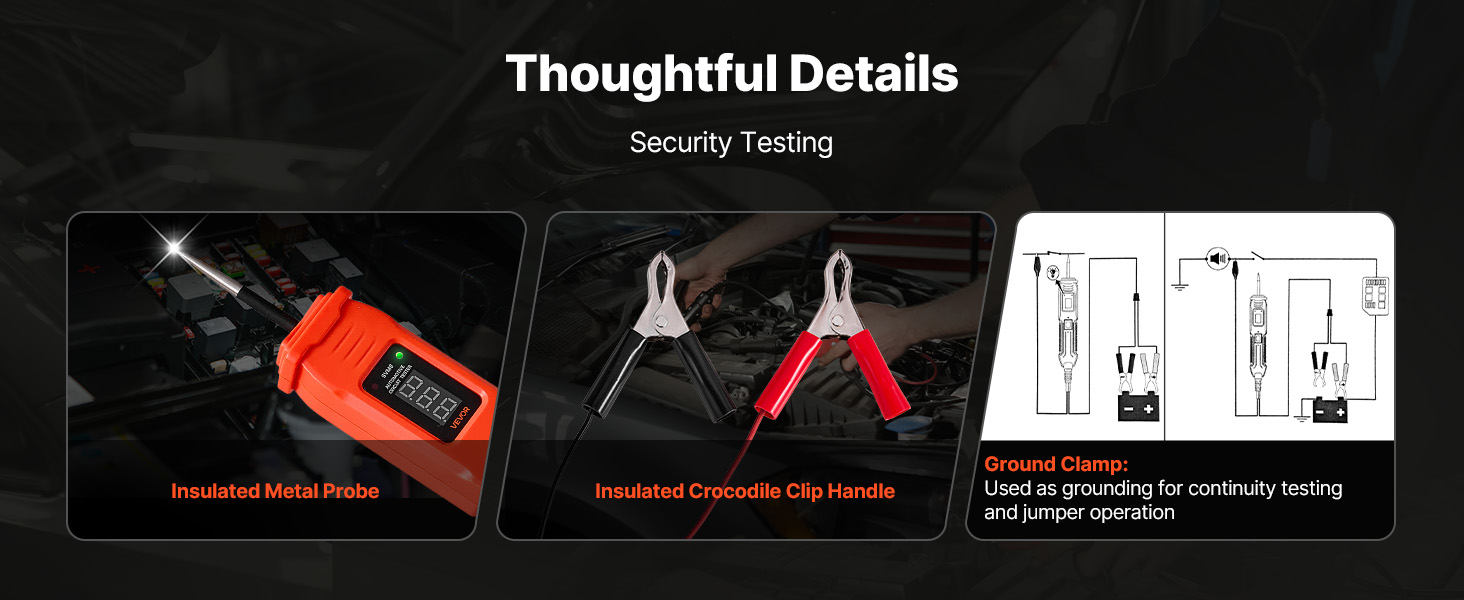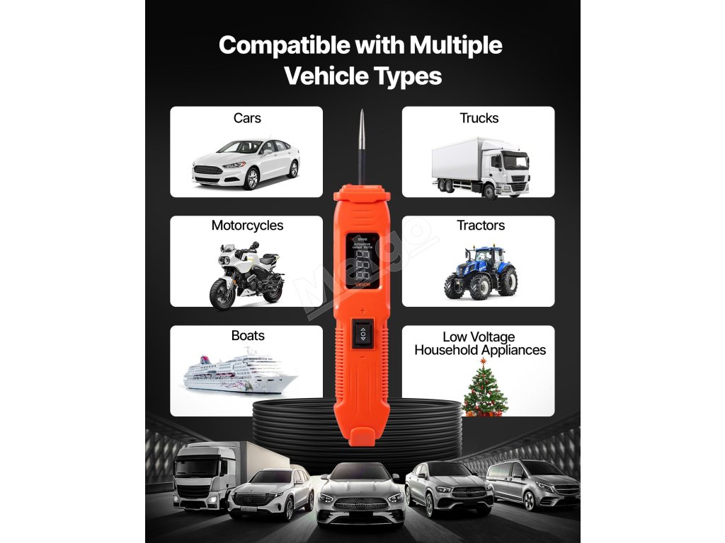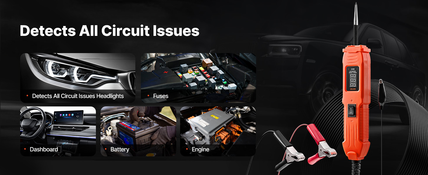 Naša sonda elektrických obvodov je univerzálna a dokáže odhaliť obvody v rôznych automobilových komponentoch vrátane svetlometov, poistiek, prístrojových dosiek, batérií, motorov a ďalších.
