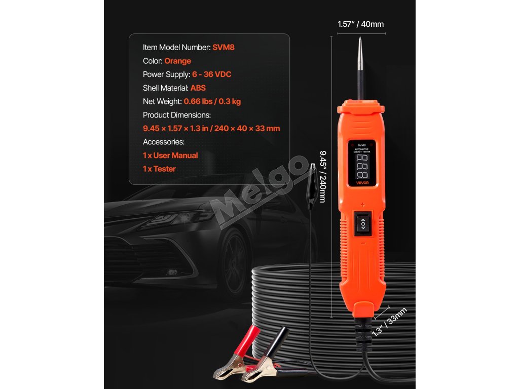 Tester obvodov pre auto 6 - 36 DCV s led displejom, 13 ft / 4 m kábel