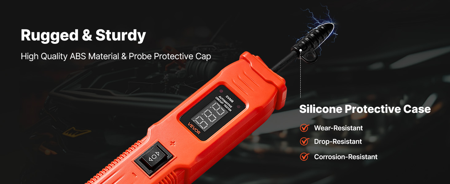 Naša automobilová skúšačka káblov je vyrobená z kvalitného materiálu ABS, je odolná proti opotrebovaniu, pádom a korózii. Je skonštruovaný tak, aby zvládol náročné prostredie a zároveň poskytoval vynikajúcu elektrickú izoláciu na spoľahlivé používanie.