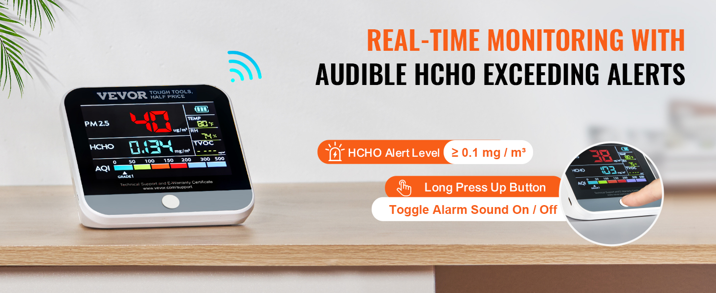 Detektor kvality ovzdušia vydáva okamžitý zvukový signál pri dosiahnutí stanovených hodnôt, čím poskytuje upozornenia v reálnom čase na zaistenie bezpečnosti ovzdušia.
