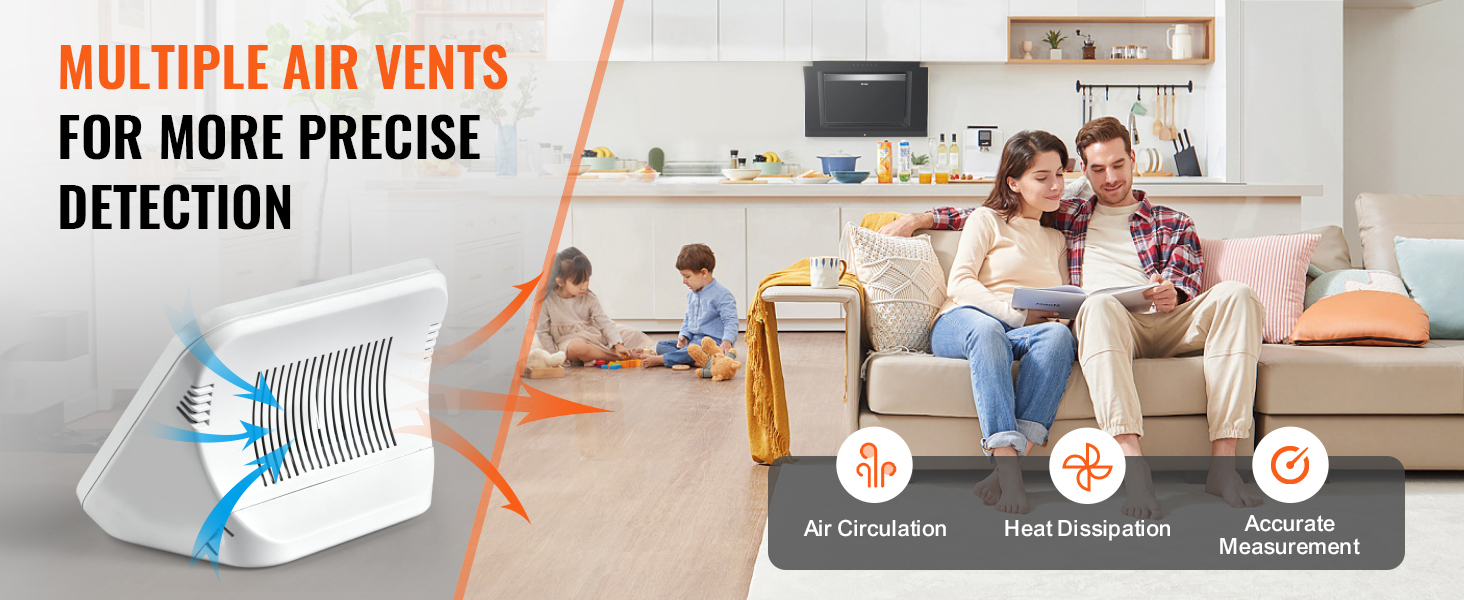 Navrhnutý s viacerými prívodmi vzduchu, ktoré výrazne zvyšujú cirkuláciu vzduchu a zabezpečujú presnejšie zisťovanie kvality vzduchu. Vyrobený z odolného materiálu ABS na dlhodobé používanie.
