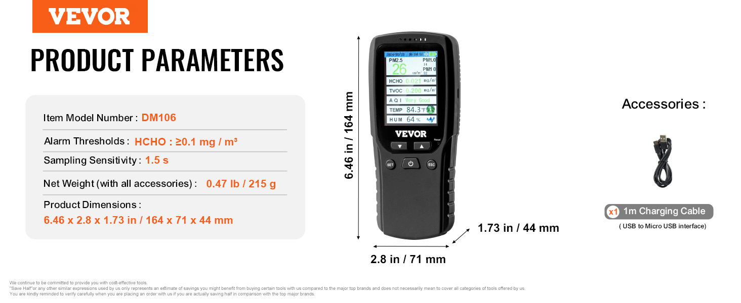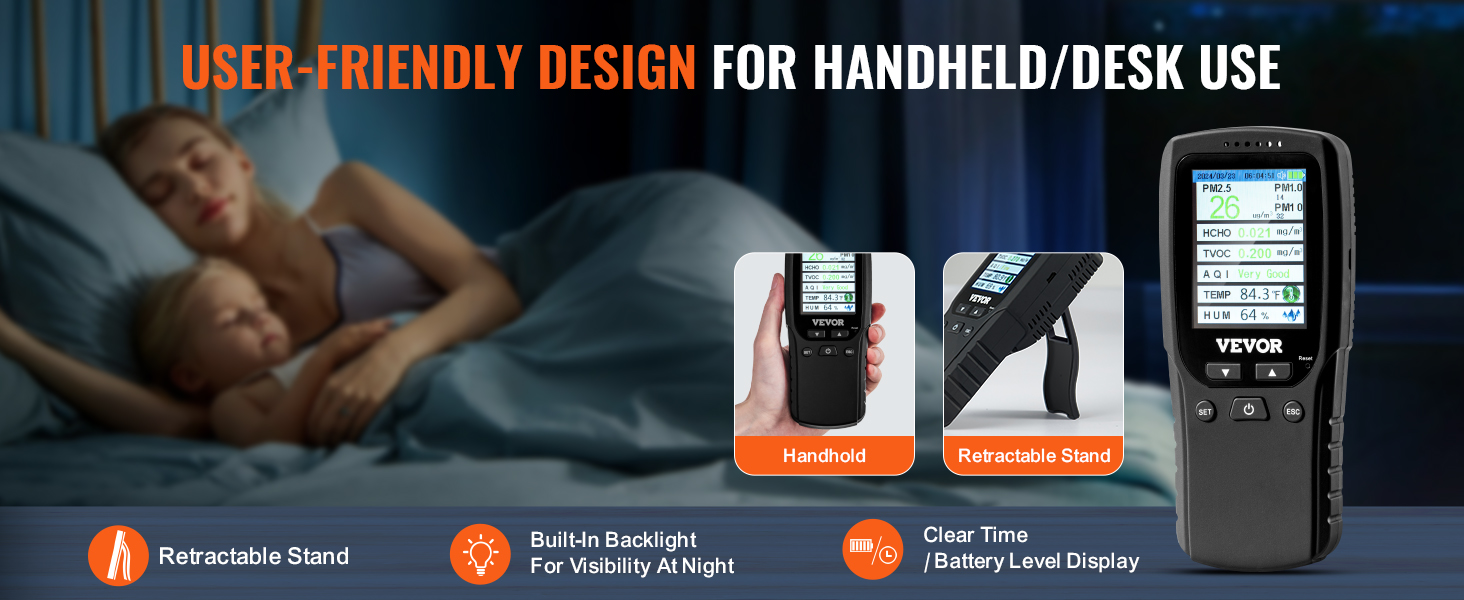 Tento multifunkčný detektor kvality ovzdušia monitoruje v reálnom čase PM2,5, PM10, TVOC, HCHO, vlhkosť a teplotu. Je vybavený veľkou farebnou obrazovkou HD pre okamžité aktualizácie a obsahuje nabíjateľnú lítiovú batériu s nabíjacím káblom typu C pre neobmedzenú, komplexnú detekciu kedykoľvek.