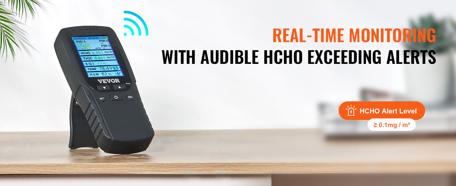 Monitor kvality vzduchu 8 v 1: PM2.5 PM10, HCHO, tepl., vlhkosť, alarm