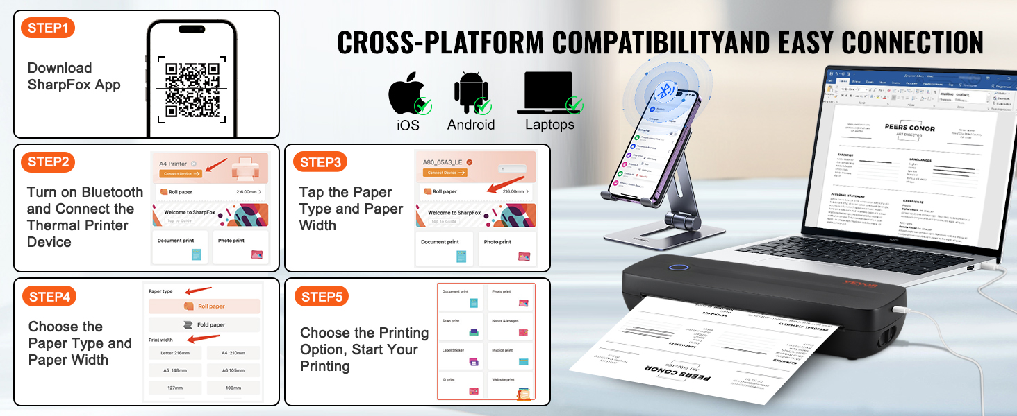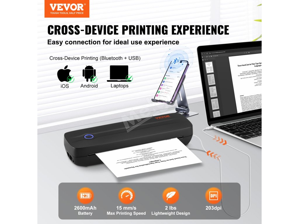 Prenosná termálna tlačiareň VEVOR ponúka ľahkú a efektívnu tlač s 2600 mAh batériou. Pripája sa k viacerým systémom a podporuje veľkosť papiera od 2 do 8,5 palca, čím poskytuje vysokokvalitné výtlačky bez atramentu na cestách.