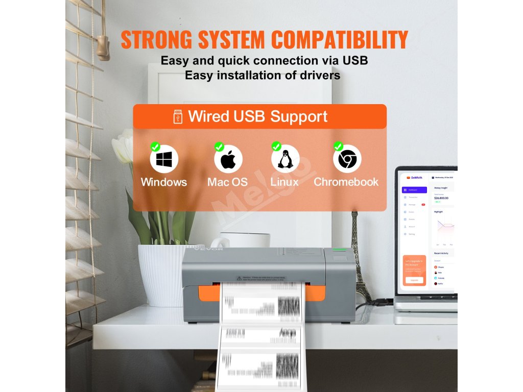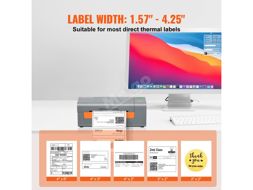 Rýchlosť tlače: 150 mm/s (6ips). Táto termotlačiareň dokáže skrátiť čas tlače a zvýšiť efektivitu práce. Podporuje šírku štítkov: 1,57" - 4,25"/40 - 108 mm.