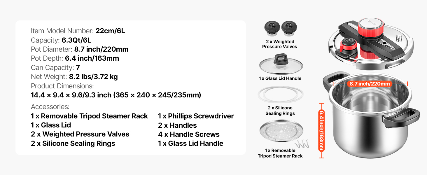 | Pot Diameter | 8.7 inch/220mm |