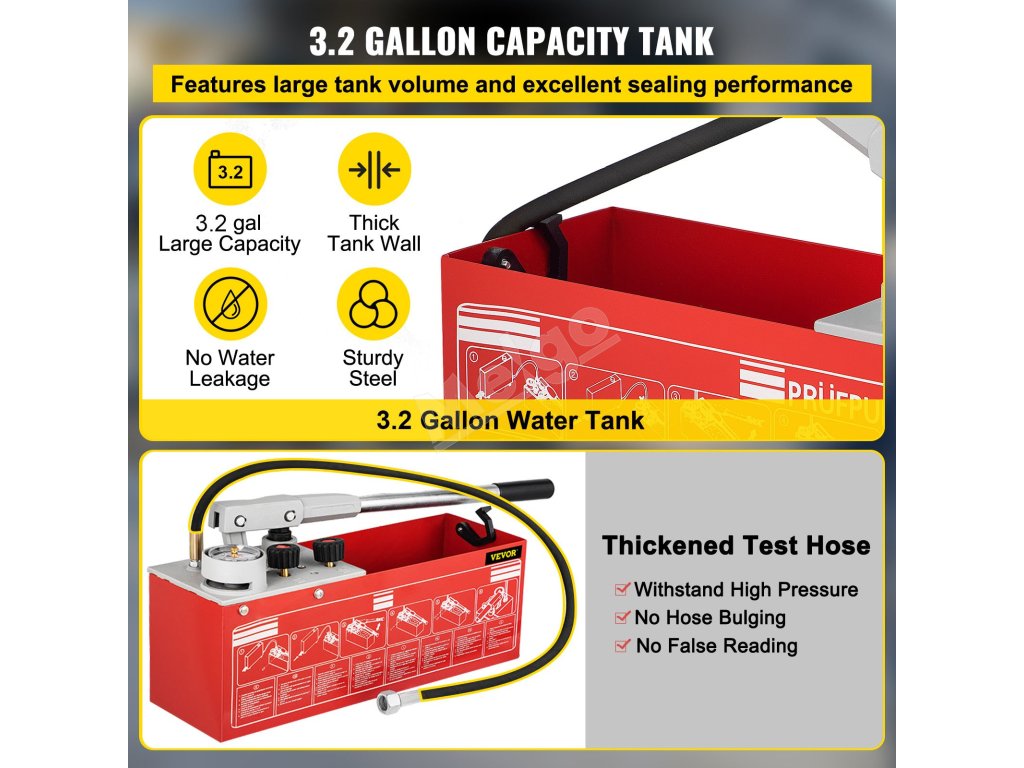 Toto hydrostatické skúšobné čerpadlo má široké uplatnenie vo vodovodných potrubných systémoch, zavlažovacích systémoch, vykurovacích a olejových zariadeniach, solárnych systémoch atď.