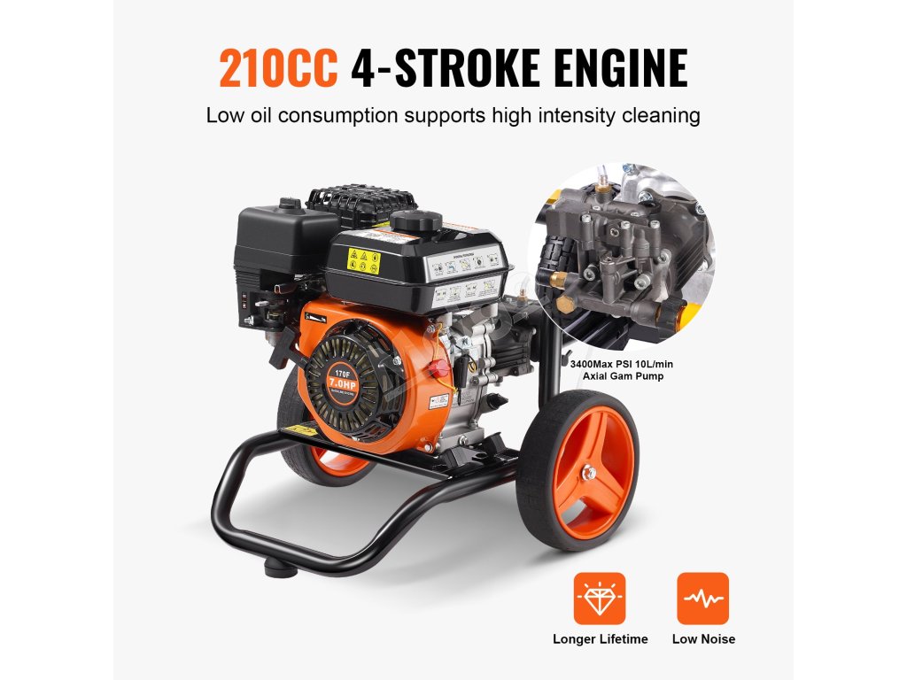 Benzínový vysokotlakový čistič 3400 PSI 2.6 GPM 10L/min s pištoľou