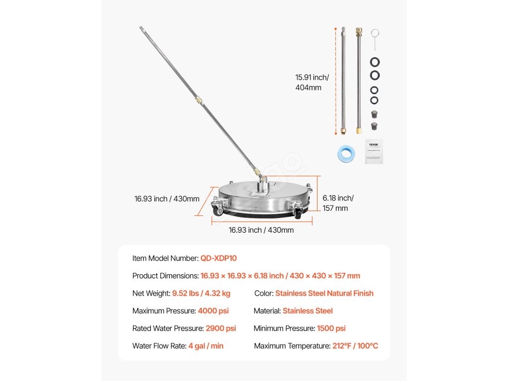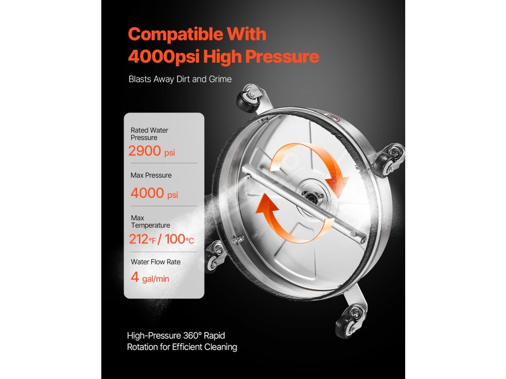Čistič povrchov vysokotlakový 16.5" nerez 4 kolieska 4000 psi