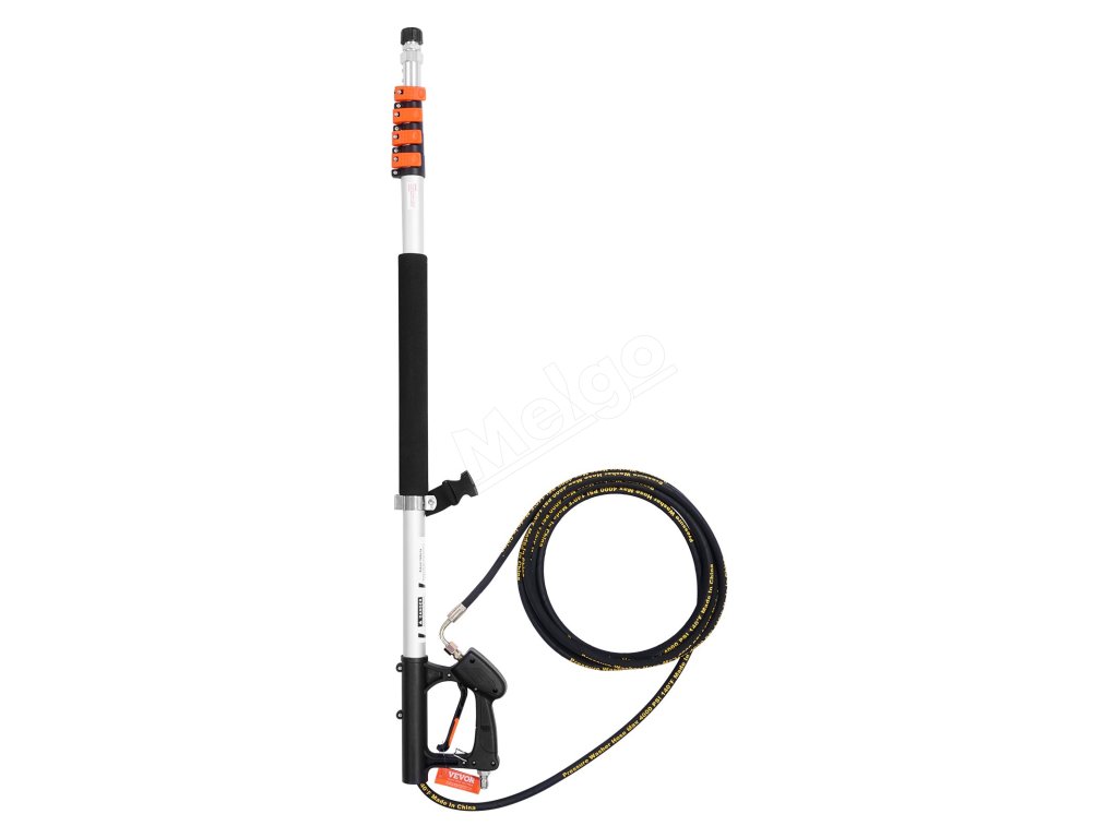 Táto teleskopická tyč tlakového čističa s dĺžkou 18 stôp umožňuje čistenie vo veľkých výškach bez námahy. Má nastaviteľnú dĺžku a rôzne čistiace príslušenstvo, ktoré dokáže účinne vyčistiť širokú škálu povrchov, čo z neho robí vynikajúci nástroj na čistenie domácnosti.