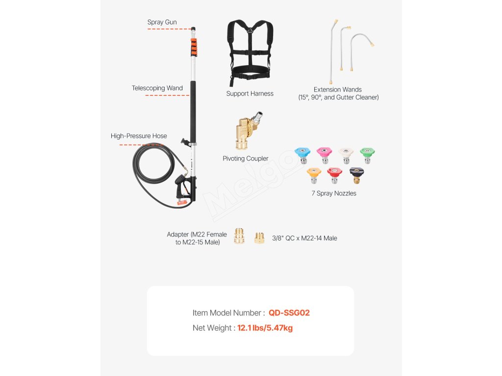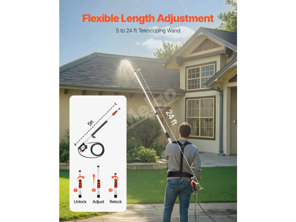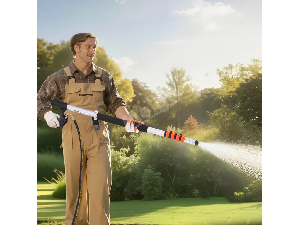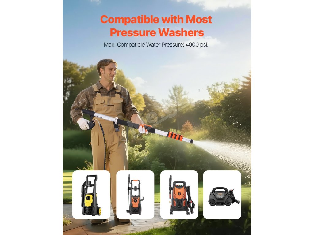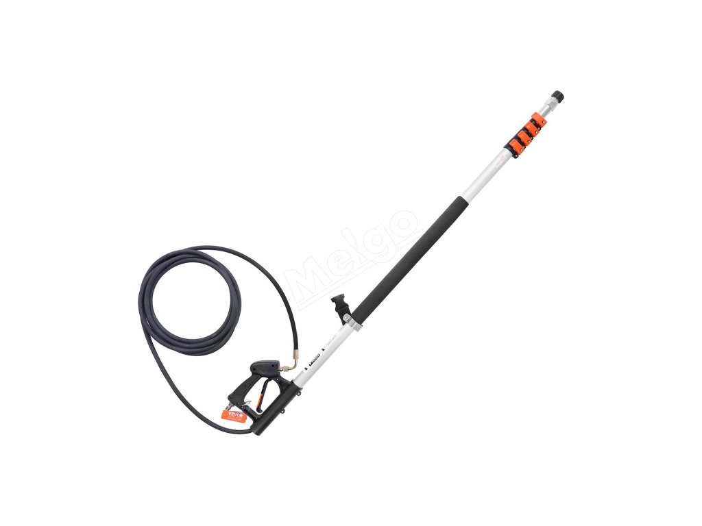 Táto teleskopická tyč tlakového čističa s dĺžkou 21 stôp umožňuje čistenie vo veľkých výškach bez námahy. Má nastaviteľnú dĺžku a rôzne čistiace príslušenstvo, ktoré dokáže účinne vyčistiť širokú škálu povrchov, čo z neho robí vynikajúci nástroj na čistenie domácnosti.