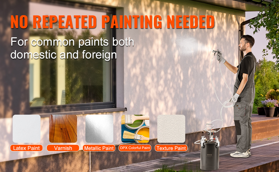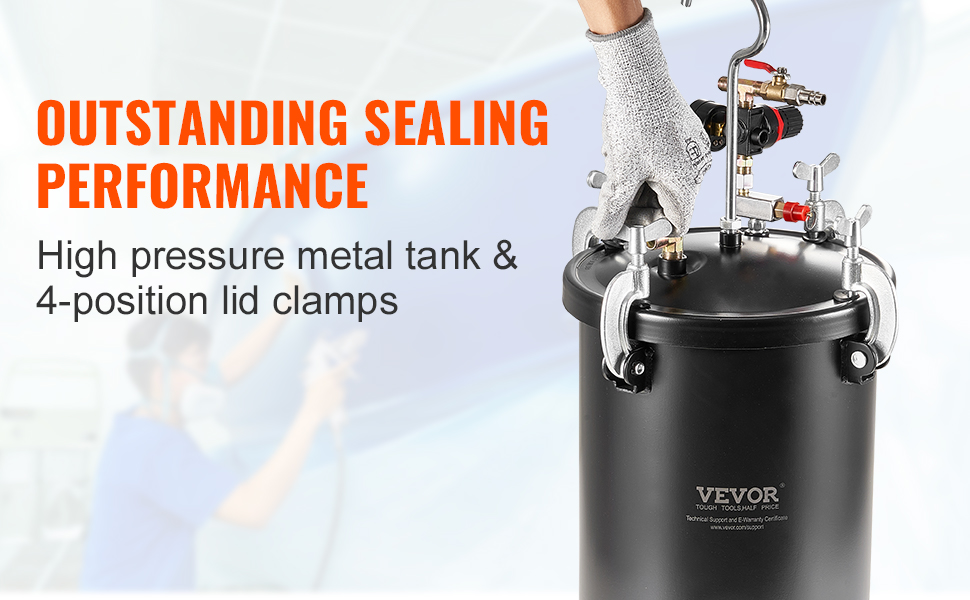 Nádrž tlakového hrnca na striekaciu farbu je vyrobená z vysokokvalitnej kovovej ocele odolnej voči vysokému tlaku, ktorá je odolná voči korózii a hrdzi, čo zaručuje dlhodobé používanie bez deformácie.