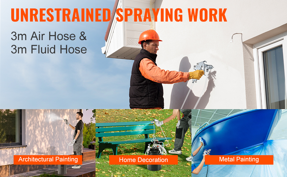 Tento tlakový hrniec na farbu je kompatibilný s bežnými typmi farieb, ako je latex, piesková farba na vodnej báze a metalická farba. Je vybavený tromi nastaviteľnými gombíkmi na ovládanie tlaku vzduchu, prietoku farby a tvaru nástreku, čím sa zabezpečí rovnomerné a konzistentné rozprašovanie.