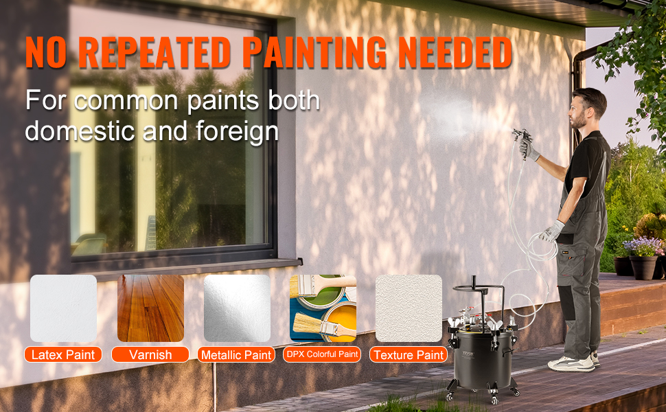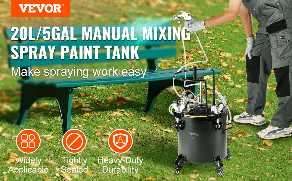 Nádrž tlakového hrnca na striekaciu farbu má kapacitu 20 l/5 galónov, čo vám umožní pokryť veľké plochy na jeden záťah bez potreby častého dopĺňania farby. Vďaka tejto konštrukcii sú vaše maliarske úlohy efektívnejšie a menej prácne.