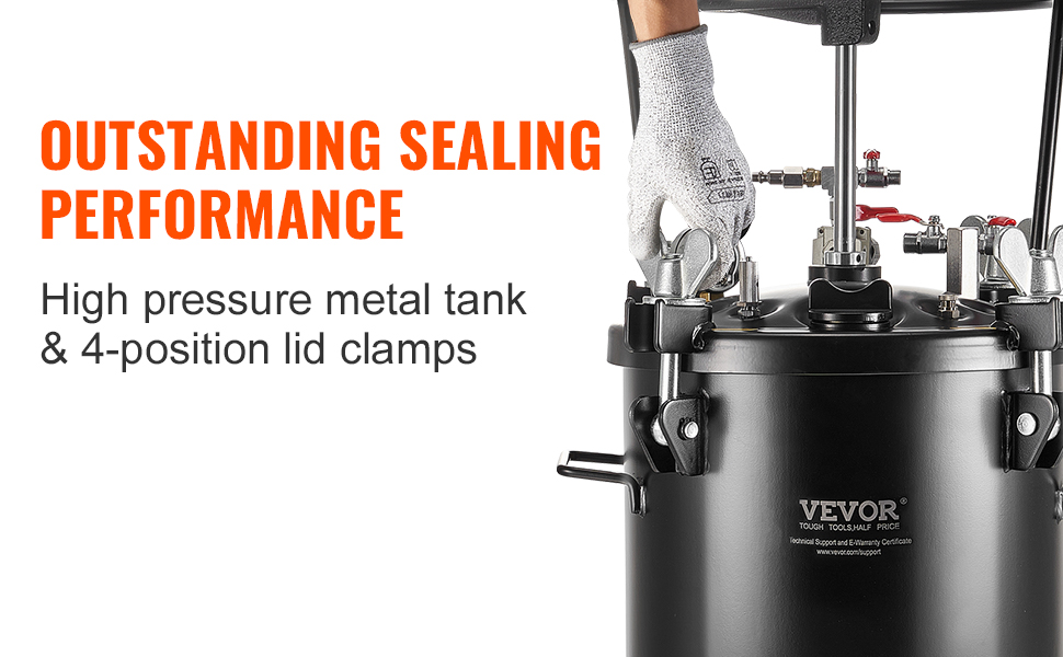 nádrž dokážu pevne utesniť 4 svorky veka. Okrem toho dokáže utesniť aj závitový tmel a zabrániť korózii a hrdzi. Naša nádrž na farbu prešla testom vodotesnosti bez úniku plynu.