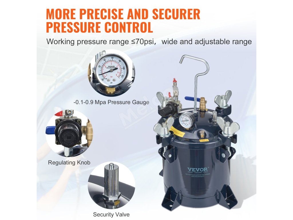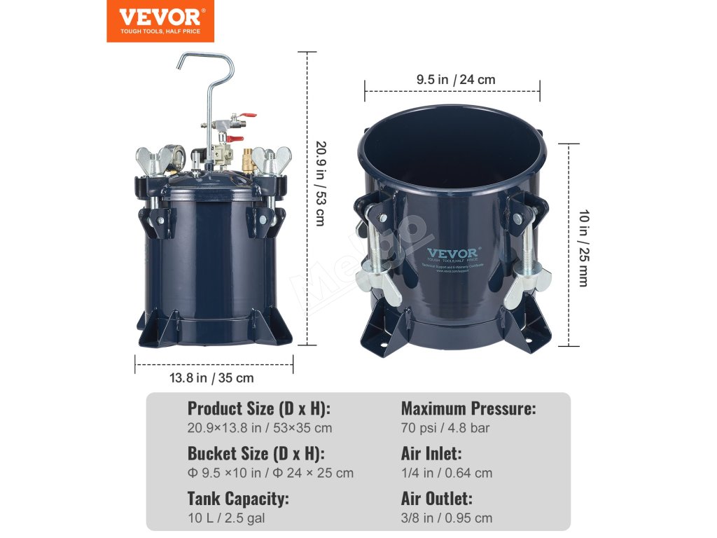 Tlakový zásobník na farbu 10 l/2.5 gal, 70 psi, kovový rám, tesnenie