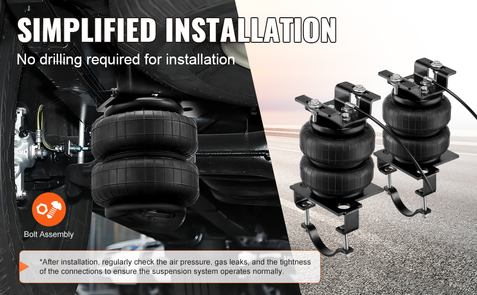 Pri inštalácii vzduchových vakov pruženia postupujte podľa podrobných pokynov bez potreby dodatočného vŕtania alebo úprav, čo zjednodušuje proces inštalácie.