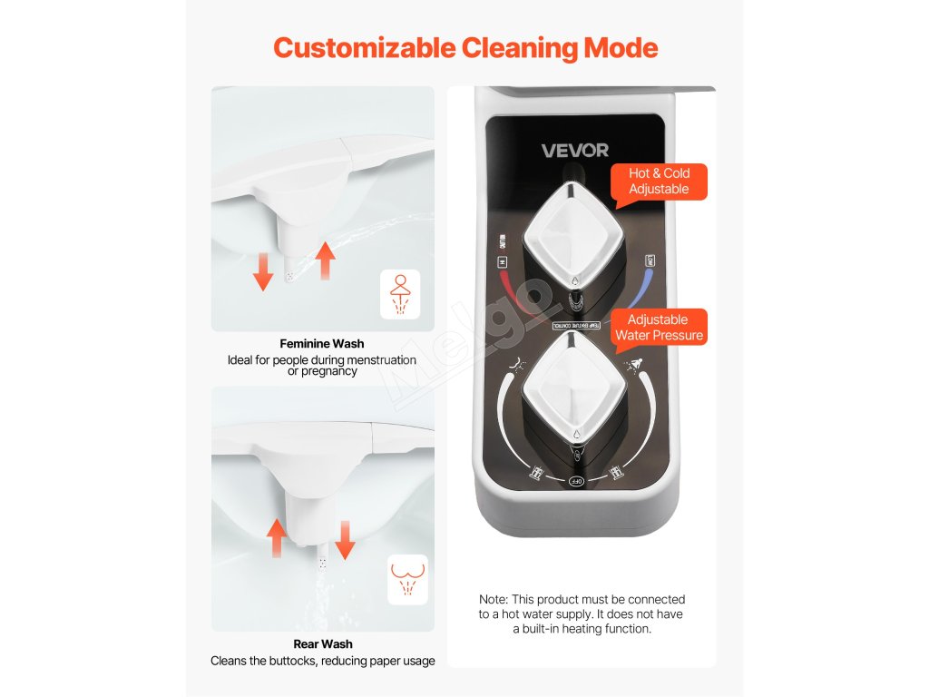Tento bidetový nástavec na WC je vybavený dvoma tryskami na predné a zadné umývanie. Ženský režim ponúka jemnú starostlivosť, ideálnu pre osoby počas menštruácie alebo tehotenstva