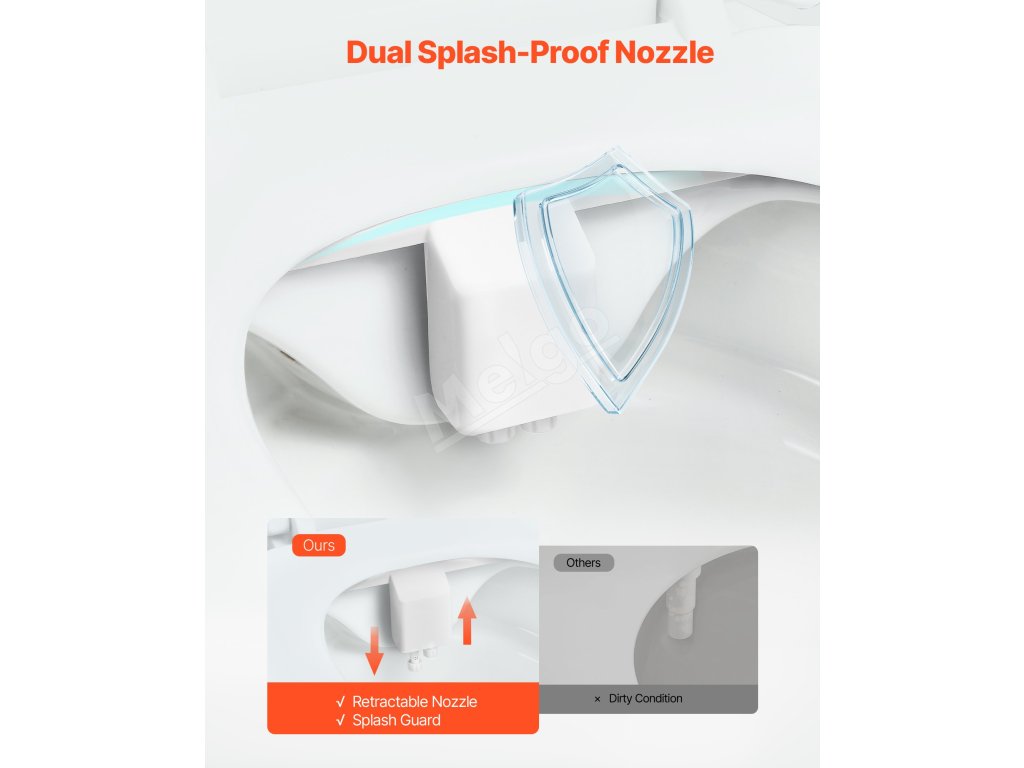 Tento bidetový nástavec je vybavený výsuvnou tryskou a ochranou proti striekajúcej vode. Keď sa dýza nepoužíva, automaticky sa zasunie za ochranný kryt, čím zostane čistá a chránená pred znečistením.