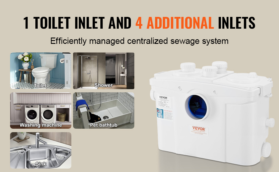 Tento účinný maceračný WC systém si poradí s viacerými zdrojmi odpadovej vody a poskytuje kompletné riešenie odvodnenia sprchy pomocou jedného čerpadla. Ak nechcete používať všetky prívody, jednoducho použite dodané kryty na uzavretie zvyšných prívodov.