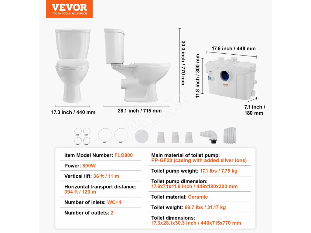 | Hmotnosť WC čerpadla | 17.1 lbs / 7,75 kg |