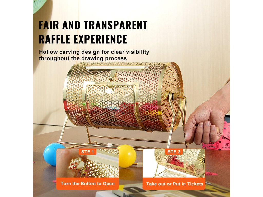 Dutý vyrezávaný dizajn zabezpečuje transparentnejší proces tomboly, čím poskytuje každému účastníkovi rovnakú šancu na výber. Loterijný bubon sa široko používa na hry bingo, hlasovanie, spoločenské stretnutia, firemné večierky, výstavy, podujatia na získavanie finančných prostriedkov a iné.