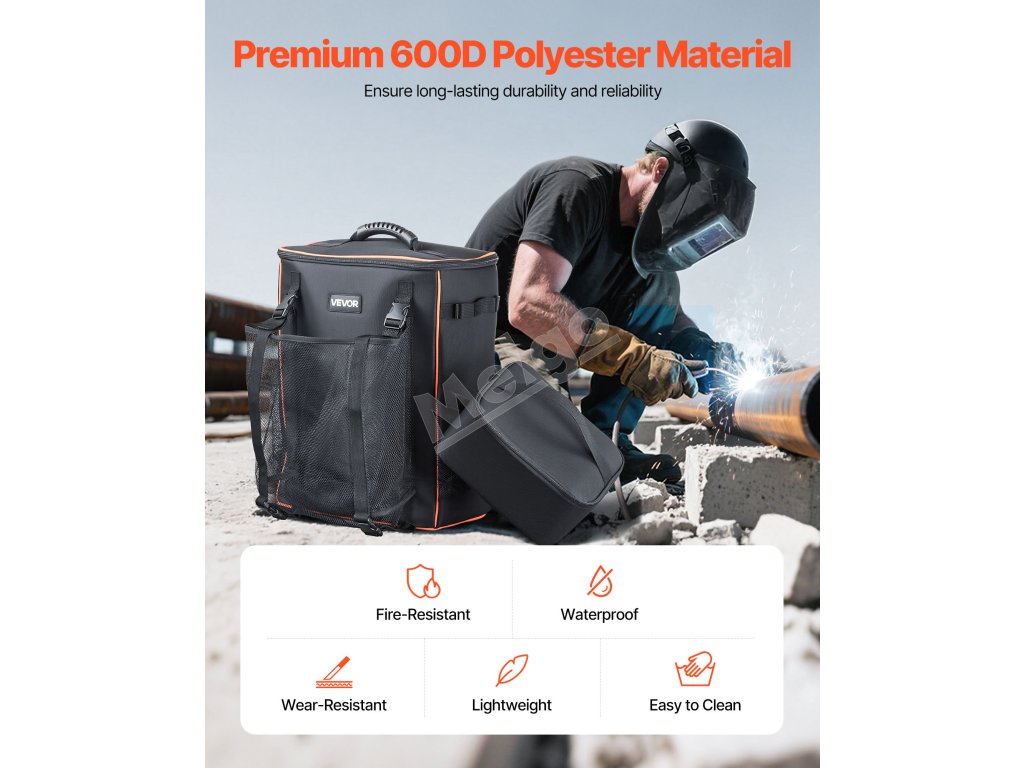 Tento batoh na zváračské náradie je vyrobený z polyesteru 600D, ktorý poskytuje odolnosť proti vode a opotrebovaniu na zvýšenie životnosti v rôznych pracovných prostrediach. Je ľahký, ľahko sa čistí a obsahuje robustné podložky pod nohy v spodnej časti pre väčšiu odolnosť proti pošmyknutiu.