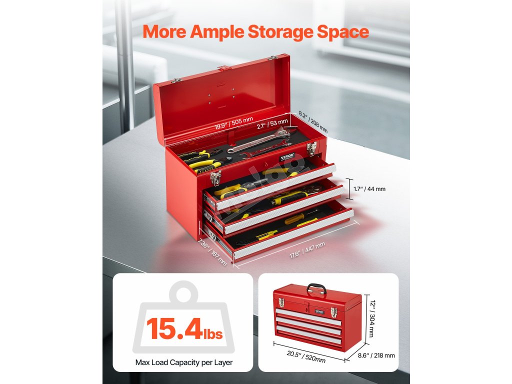 20,5-palcový prémiový zásuvkový box na náradie poskytuje vynikajúce organizačné riešenie s odolnou konštrukciou. Každá vrstva unesie až 15 libier váhy.