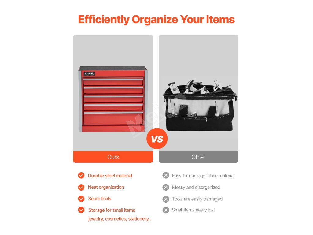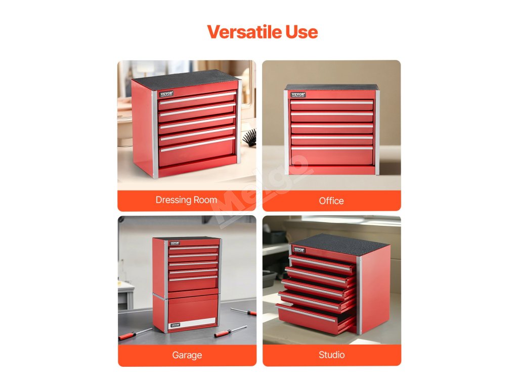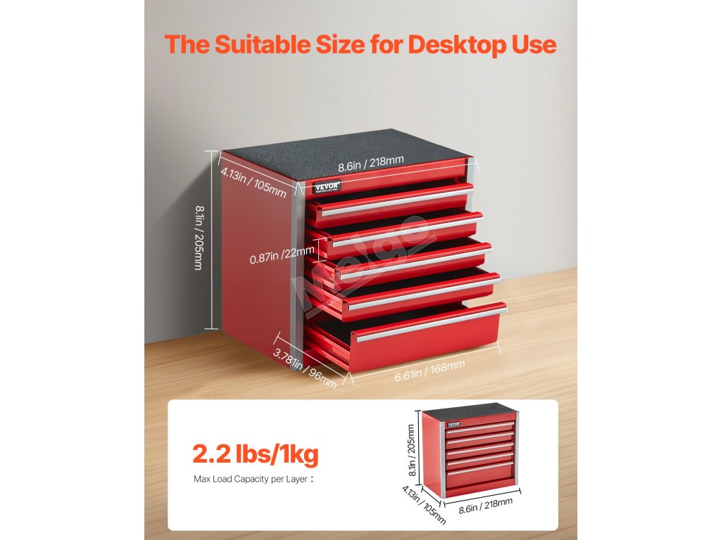 Vďaka 5 zásuvkám vo vnútri vám mini kovový box na náradie pomôže udržať rôzne predmety usporiadané a váš pracovný priestor bude vyzerať čisto a prehľadne.