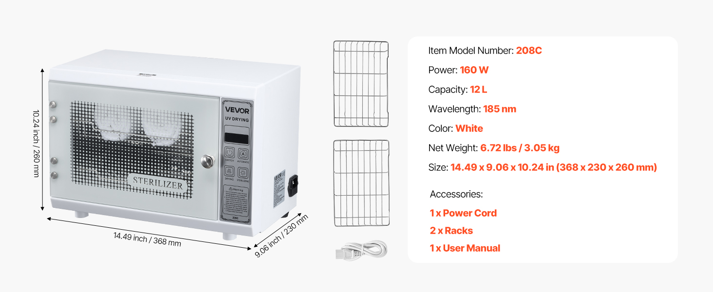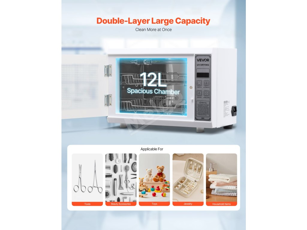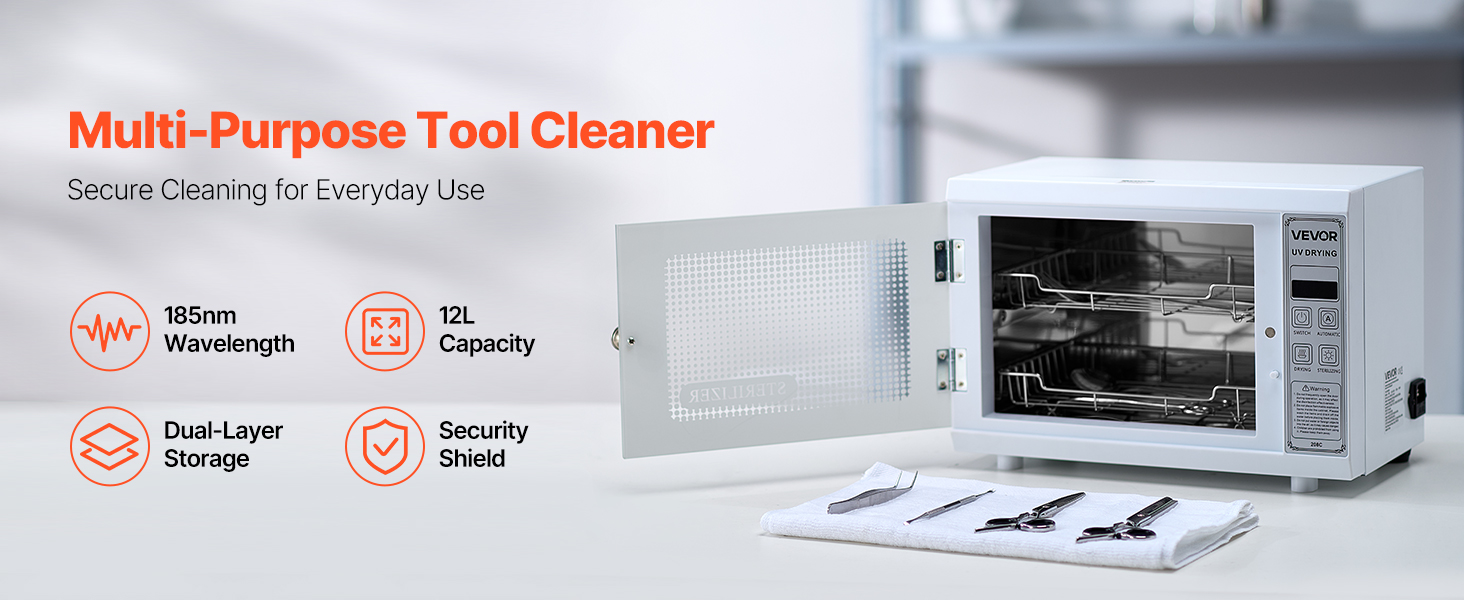 Tento multifunkčný stroj na čistenie nechtových nástrojov využíva UV svetlo s vlnovou dĺžkou 185 nm na účinné čistenie. Veľká kapacita 12 l s dvojvrstvovým dizajnom spĺňa potreby rodín, nechtových salónov, kozmetických salónov a ďalších. Viacero bezpečnostných funkcií zabezpečuje bezproblémové používanie.