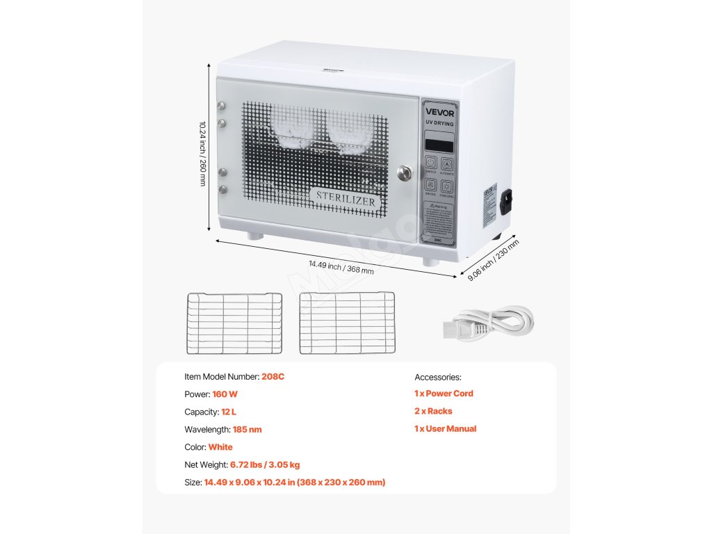 Čistiaci box na nechtové nástroje 12L, časovač, 185nm, tvrdené sklo
