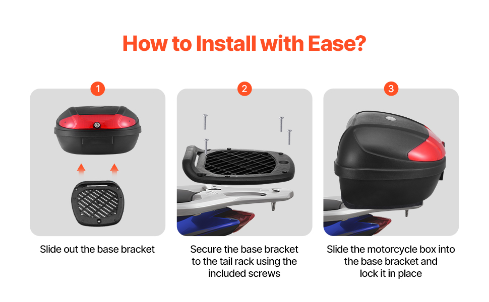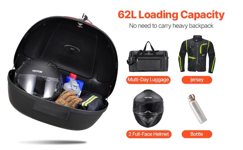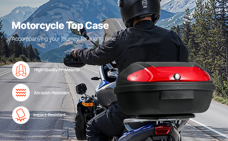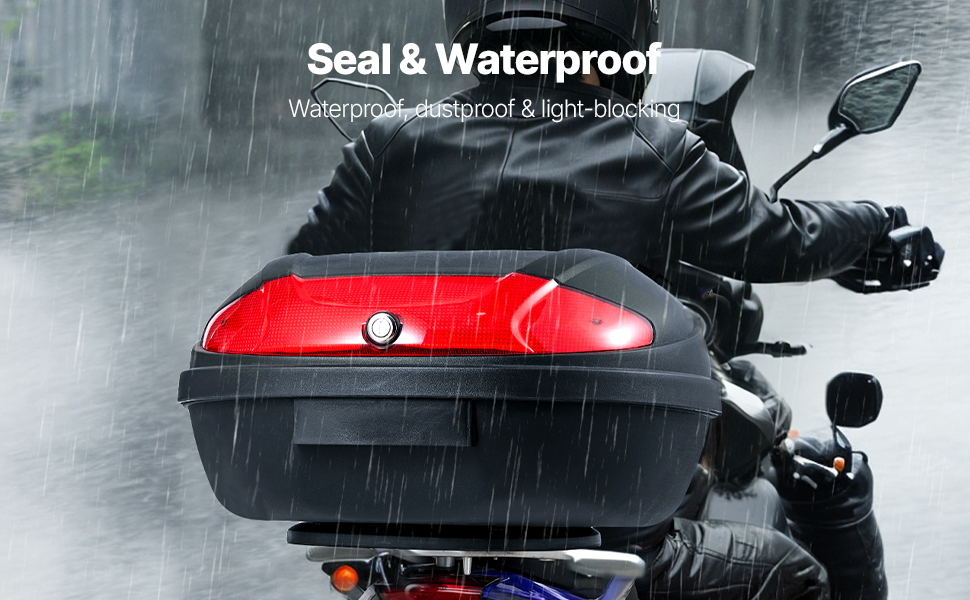 Vďaka utesnenej konštrukcii zostanú predmety vo vnútri horného kufra na motocykel suché a v bezpečí, takže môžete jazdiť bez obáv za každého počasia.