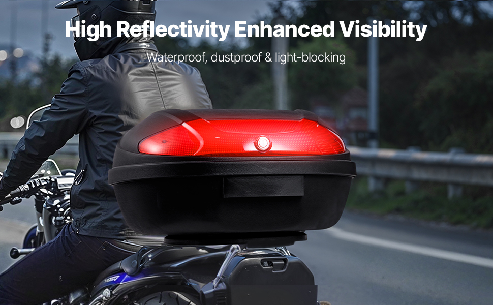 Reflexné štítky vrchného kufra na motocykel zabezpečujú, že zostanete viditeľní pre ostatných vodičov, a tak budete na ceste v bezpečí, najmä v noci.
