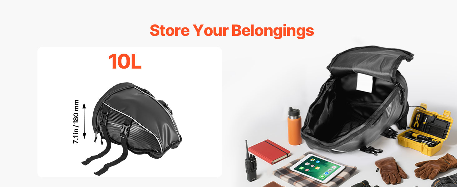 Priestranný dizajn ľahko pojme všetky vaše potreby a udrží ich prehľadne uložené v taške na zadnom sedadle motocykla.
