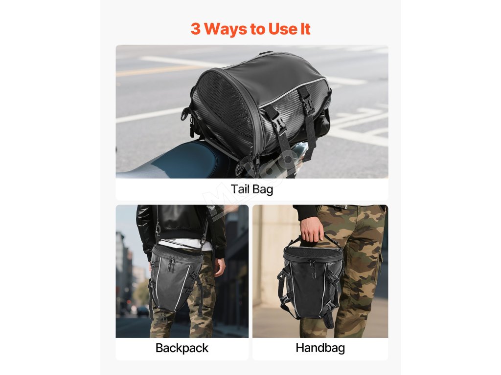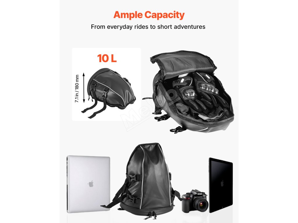 Motocyklová zadná taška 10 L s nepremokavým krytom, popruhom a vreckom