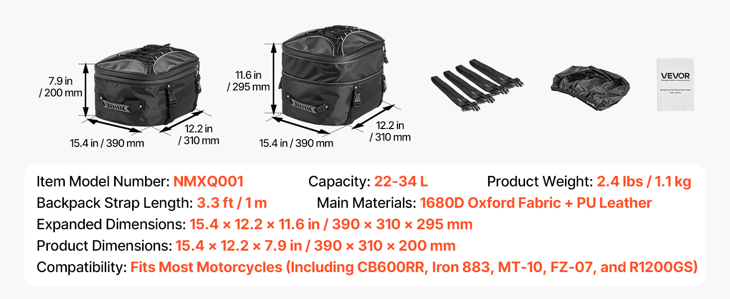 Táto zadná taška na motocykel je vhodná pre väčšinu modelov motocyklov, je navrhnutá pre zadnú časť a poskytuje ideálny dodatočný úložný priestor.