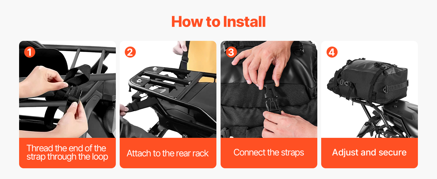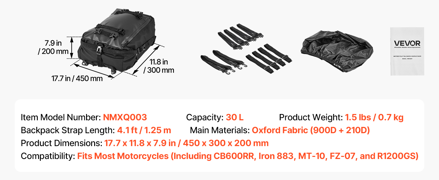 Táto zadná taška na motocykel je vhodná pre väčšinu modelov motocyklov, je navrhnutá pre zadnú časť a poskytuje ideálny dodatočný úložný priestor.