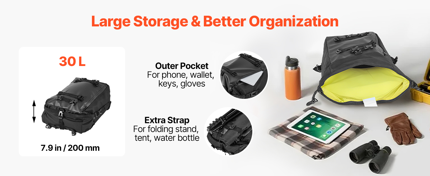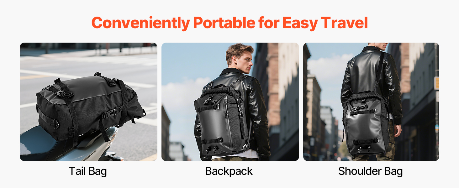 Motocyklový zadný vak 30 L, vodotesný, s ramennými popruhmi, na nosiče