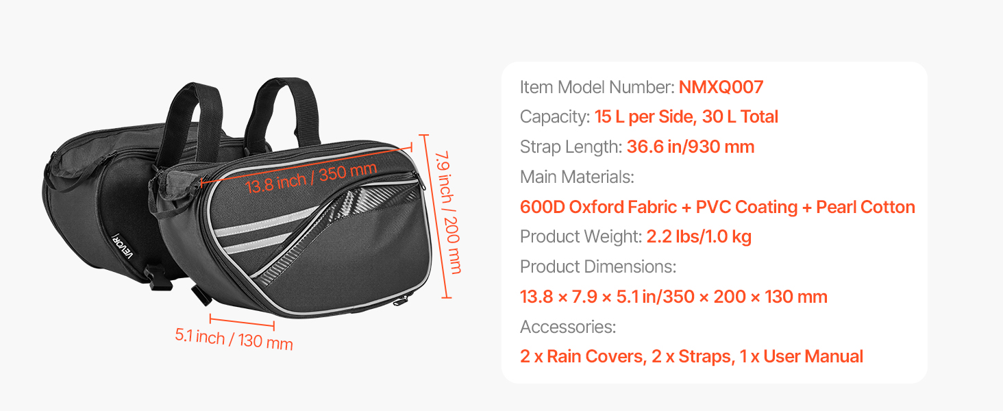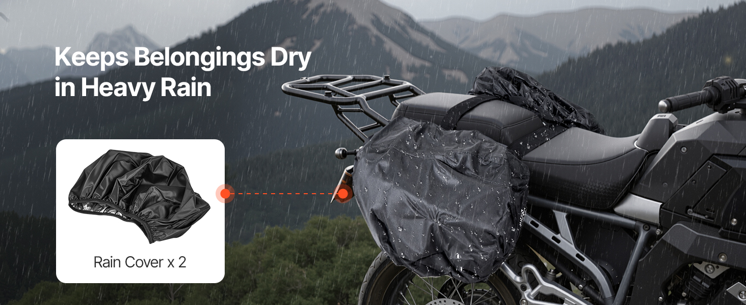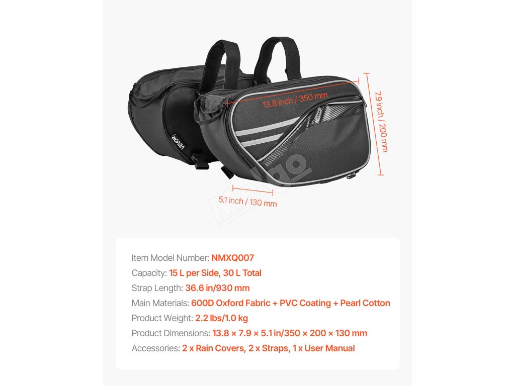 Sedlová brašňa na motorku 30 L (15 L × 2) s pláštenkou a popruhmi