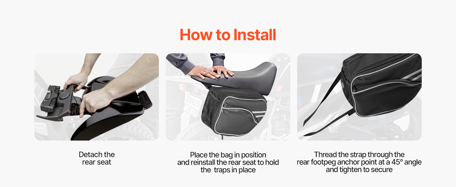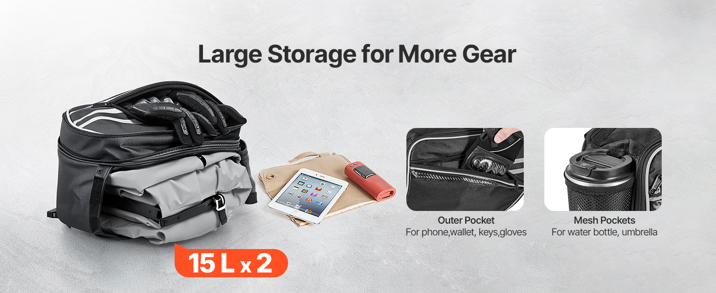 Táto taška pod sedlo motocykla je vhodná pre väčšinu modelov motocyklov a je navrhnutá tak, aby poskytovala ideálny dodatočný úložný priestor.