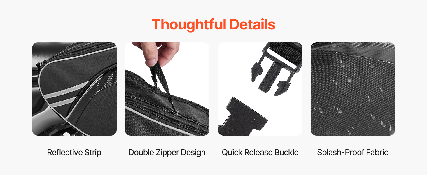 Každý detail našej vodotesnej tašky pod sedlo motocykla je vyrobený pre pohodlie. Prémiové dvojité bočné zipsy sľubujú väčšie pohodlie, pričom štýlový vzhľad dodávajú reflexné prúžky.