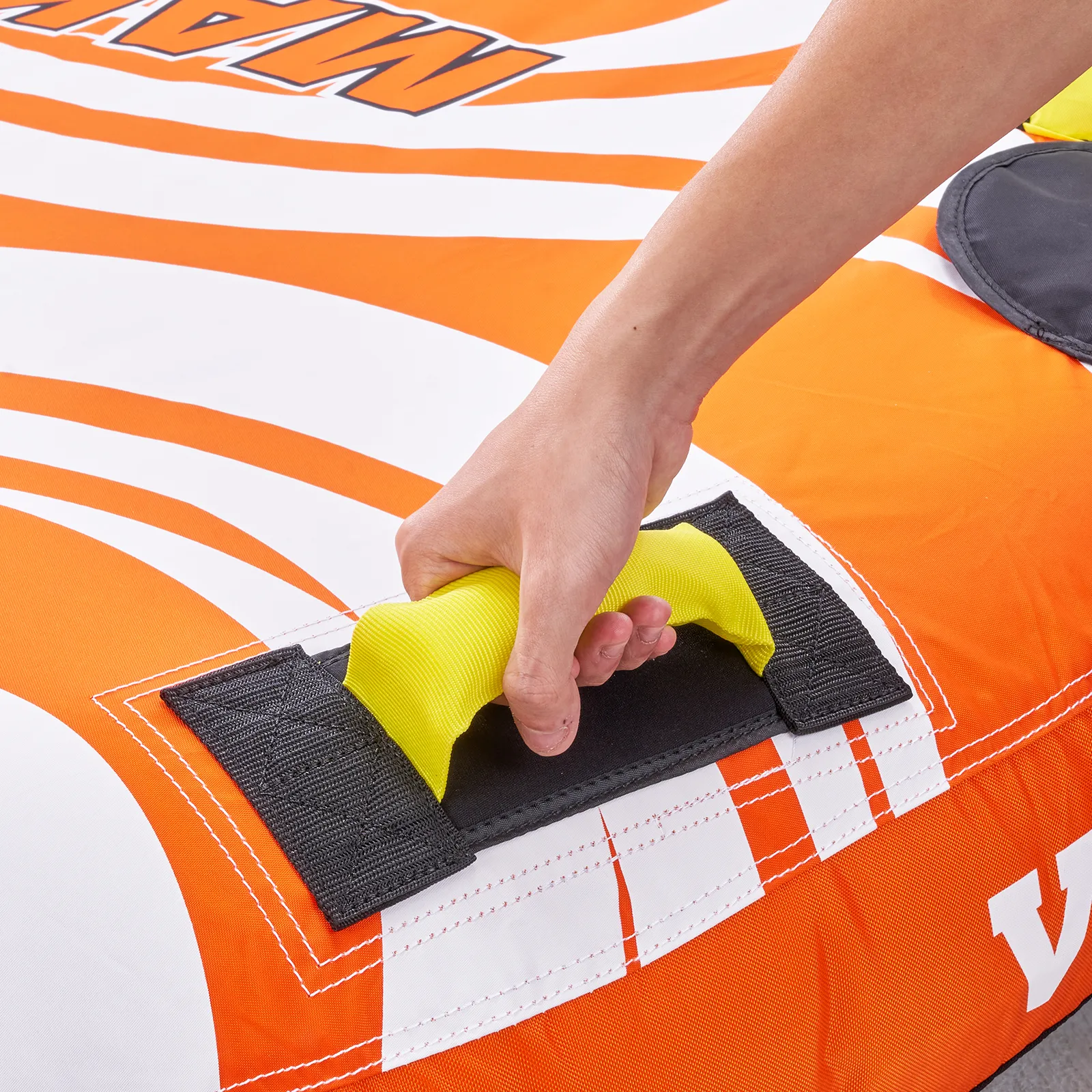 Zažite dokonalé vodné dobrodružstvo s naším vlečným tubusom pre 2 jazdcov na člnkovanie. Je skonštruovaný pre zábavu aj bezpečnosť a umožňuje vám užívať si vodné aktivity s istotou. Vďaka pohodlným rukovätiam na uchopenie a držadlám na nastupovanie zaručuje stabilnú jazdu a jednoduché opätovné nasadnutie po špliechaní.
