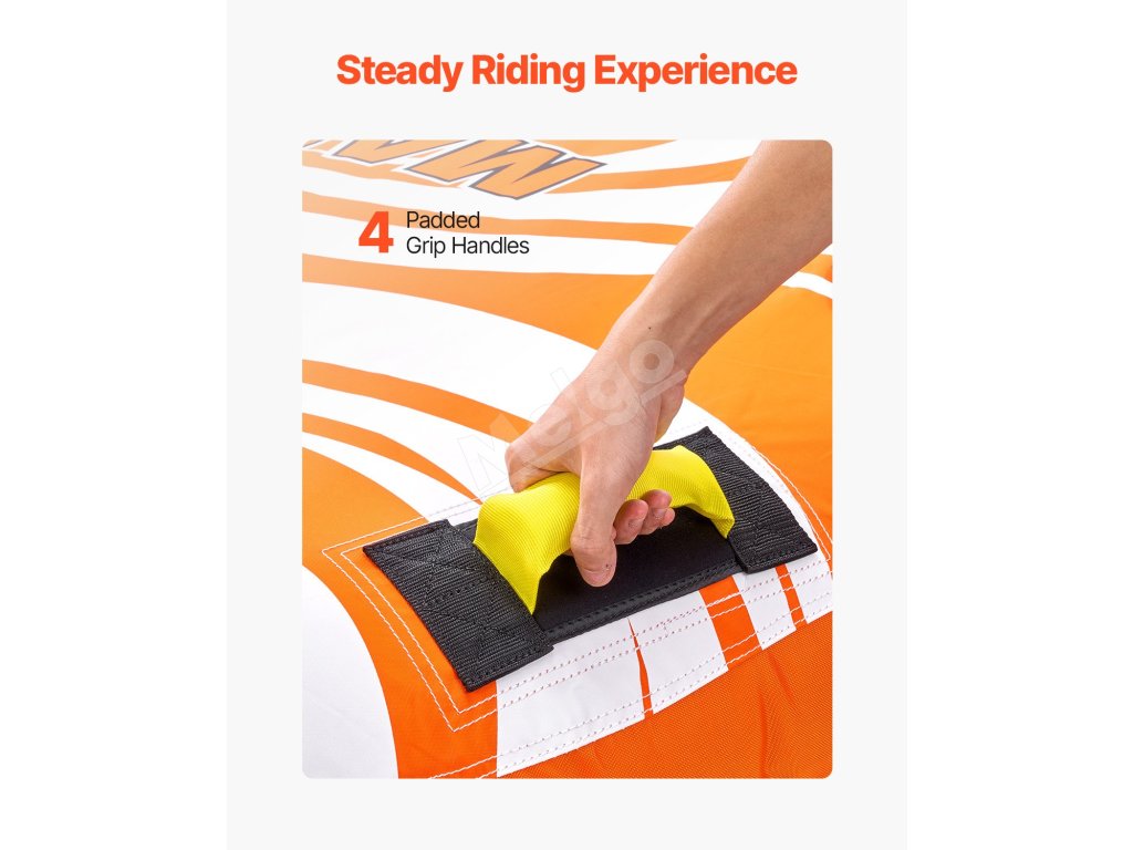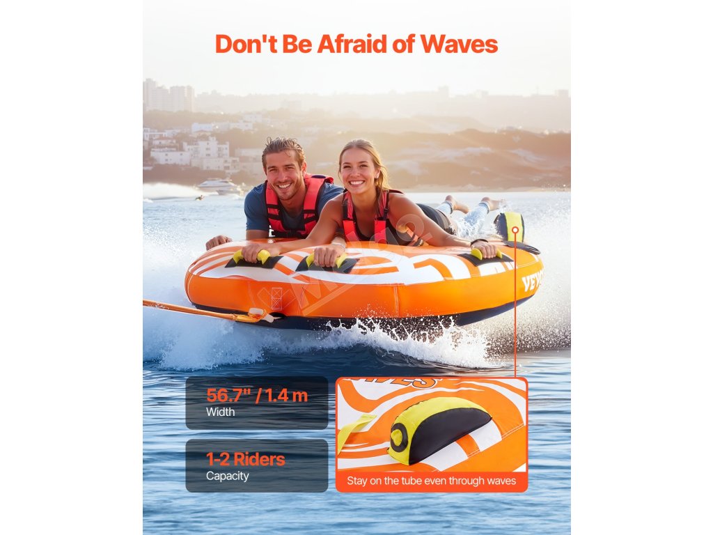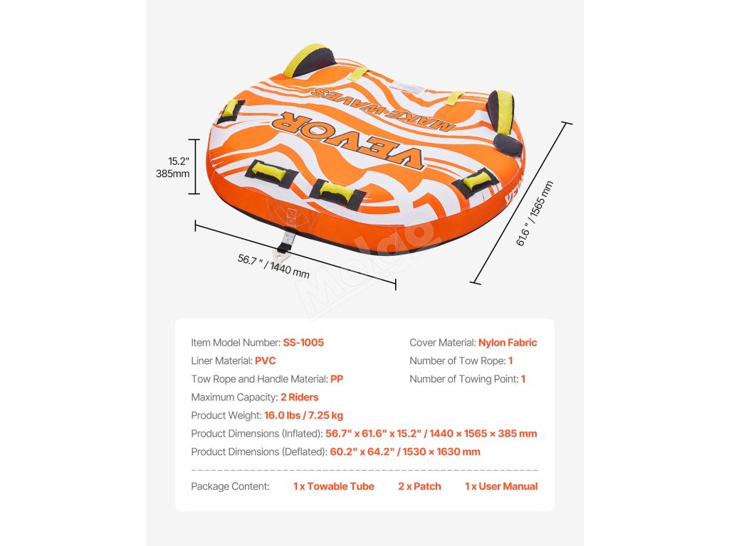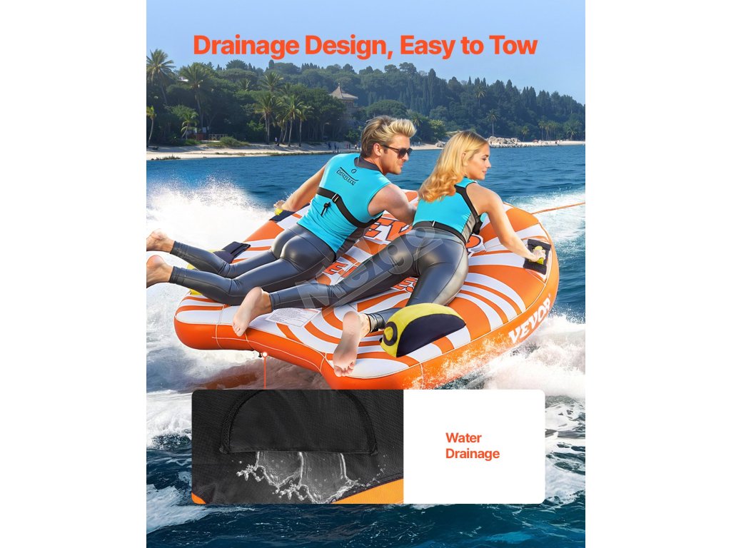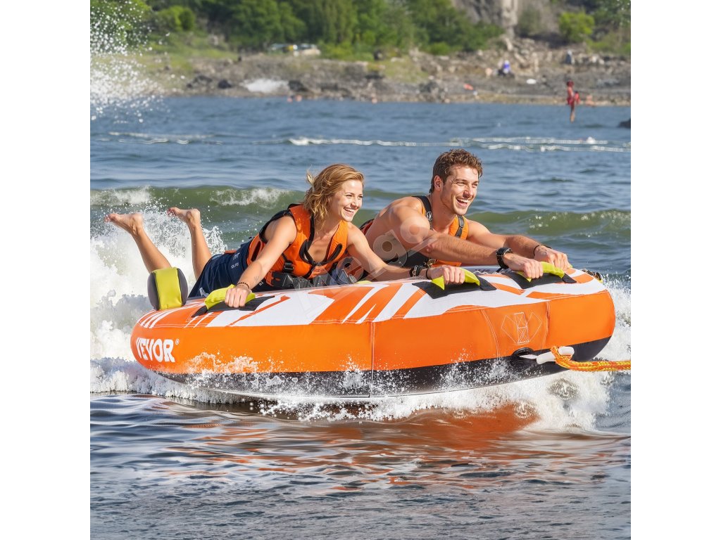 Zažite dokonalé vodné dobrodružstvo s naším vlečným tubusom pre 2 jazdcov na člnkovanie. Je skonštruovaný pre zábavu aj bezpečnosť a umožňuje vám užívať si vodné aktivity s istotou. Vďaka pohodlným rukovätiam na uchopenie a držadlám na nastupovanie zaručuje stabilnú jazdu a jednoduché opätovné nasadnutie po špliechaní.