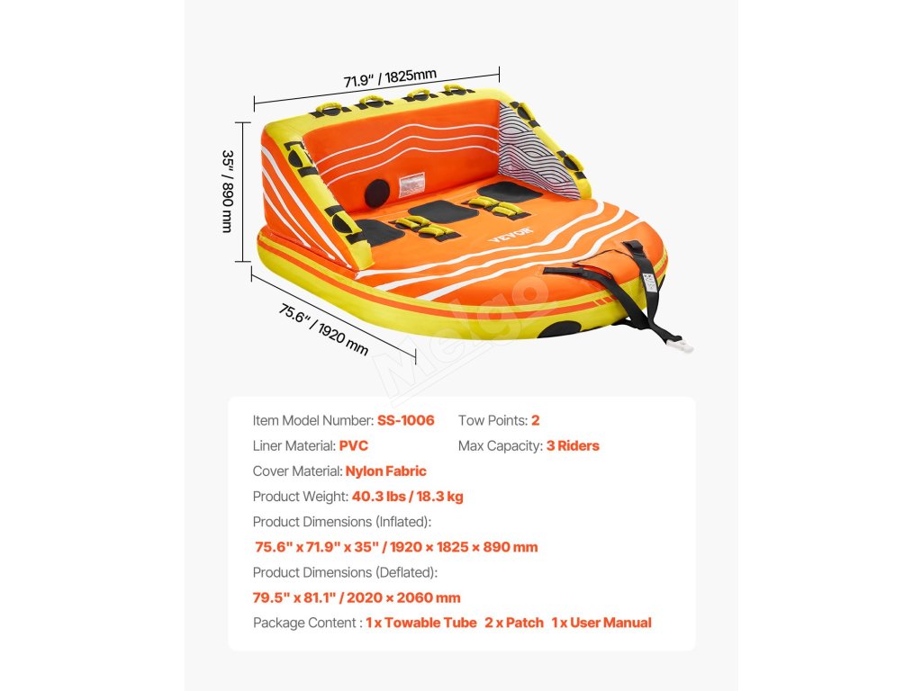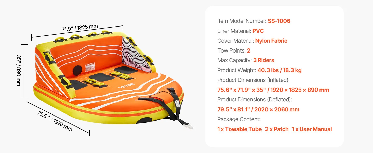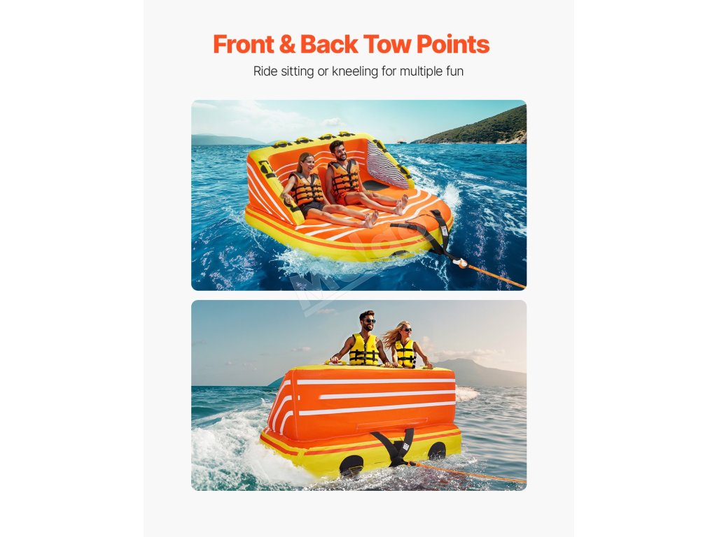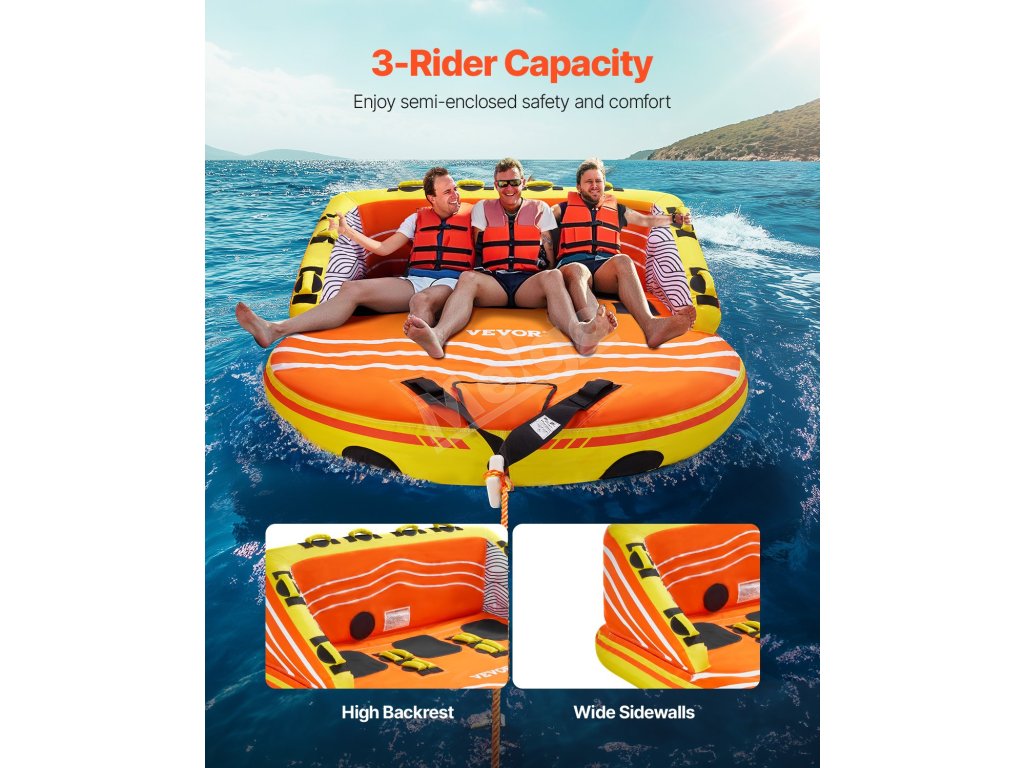 Zažite vzrušujúce vodné dobrodružstvo s naším vlečným tubusom pre 1-3 jazdcov na člnkovanie. Je navrhnutý pre bezpečnosť, pohodlie a vzrušenie, má vysoké opierky chrbta a široké bočnice, ktoré zabraňujú pádom počas vysokorýchlostnej jazdy, spolu so 16 rukoväťami na uchopenie a 2 popruhmi na nastupovanie pre ľahký prístup po špliechaní.