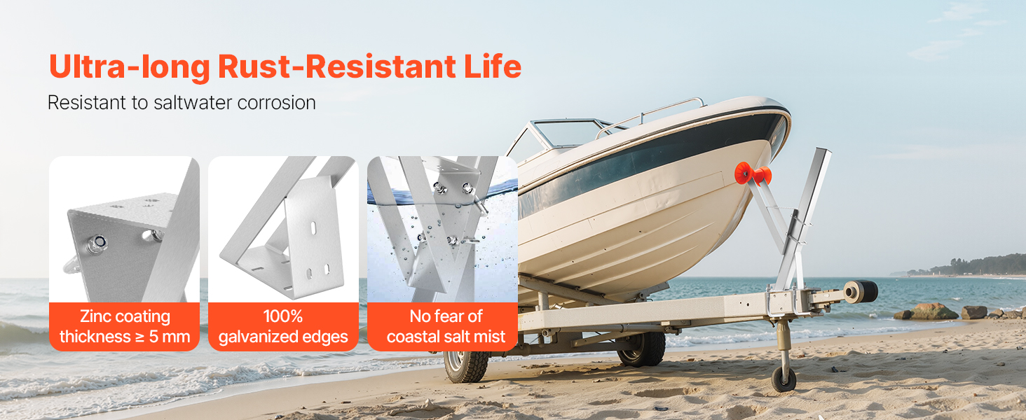 Tento stojan na navijak prívesu, vyrobený zo žiarovo pozinkovanej ocele s 5 mm vrstvou zinku, odoláva soľnej hmle a korózii aj v náročnom počasí. Je skonštruovaný tak, aby vydržal, a poskytuje spoľahlivý výkon bez hrdze po celé roky.