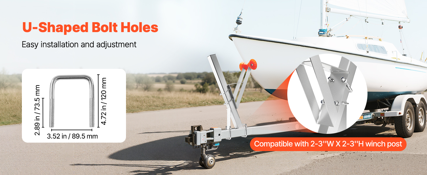 Vďaka montážnym otvorom s U-skrutkou sa tento stojan na navijak na lodný príves inštaluje rýchlo a bez váhania. V okamihu zaistíte svoj príves a pripravíte ho na akciu, vďaka čomu bude vaše nastavenie rýchlejšie a bezproblémové.
